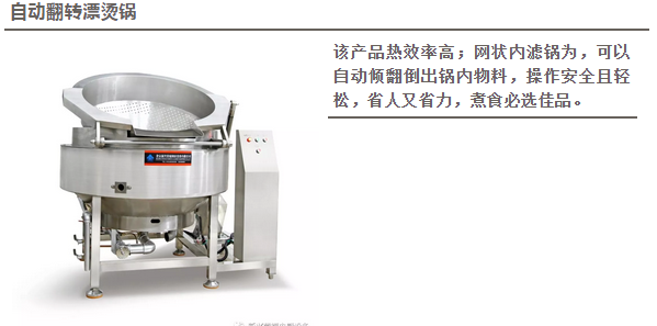 北京新興榮福廚房設(shè)備公司生產(chǎn)的新型的自動翻轉(zhuǎn)式漂燙鍋,不光在焯菜方面出工出力,用于煮肉、鹵菜那也是戰(zhàn)功赫赫!