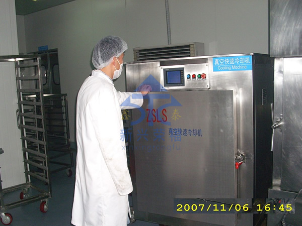由于食品適宜細(xì)菌繁殖的溫度帶是 20--65 ℃ 。真空快速冷卻能夠迅速降低熟食品出鍋后的熱量,防止高溫下的食品氧化,同時(shí)由于食品在密封的真空環(huán)境下快速冷卻,可以避免空氣中細(xì)菌再次污染。 從而延長(zhǎng)保質(zhì)期。